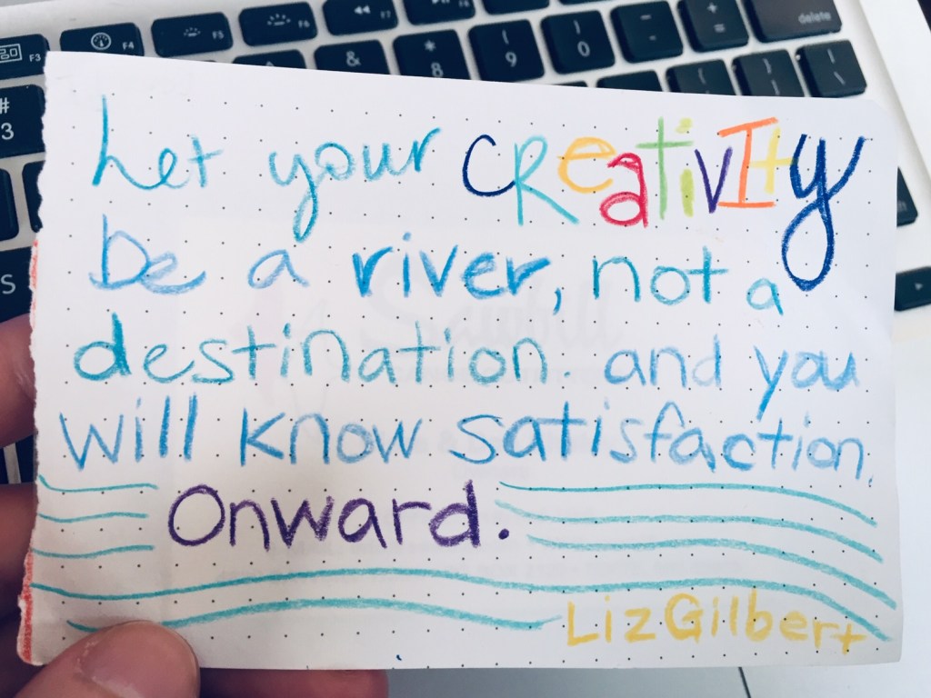 Just today, I had a moment in the middle of class where I looked around–having felt the creative energy that sometimes swirls through the classroom as students get good idea after good idea–and I smiled thinking, this, this is it. This is my life. Not some destination I’m working toward, not some check-list to finish as fast as I can, but this, a moment to live my own life.